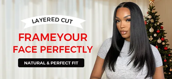 Layered Straight Hair Glueless Lace Front Wigs 100% Human Hair Medium Length Pre Plucked & Bleached