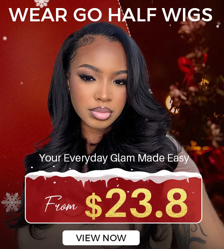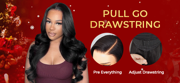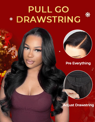 Yaki Body Wave Half Wig Glueless Install 100% Human Hair Pull Go with Adjustable Drawstring