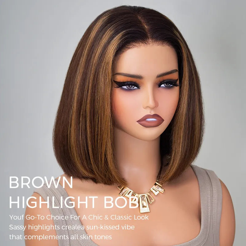 Ombre Brown Blonde Highlight Color Short Bob Straight Human Hair 6×5 Glueless Lace Wig Bleached Knots4.9626168224299 out of 5(107 Reviews)$109.23