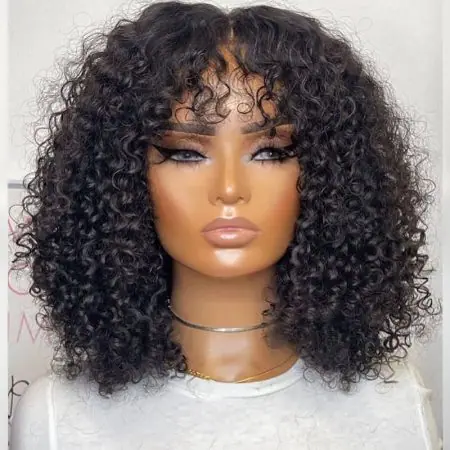 Short Fluffy Curly Human Hair Wig with Bangs Glueless Bob Wig4.9742268041237 out of 5(194 Reviews)$69.87