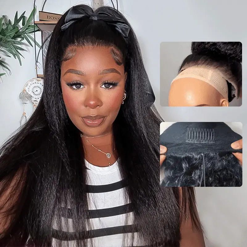 Drawstring 360 Lace Frontal Kinky Straight Glueless Wigs 100% Human Hair Pre Everything MyOwn Hairline