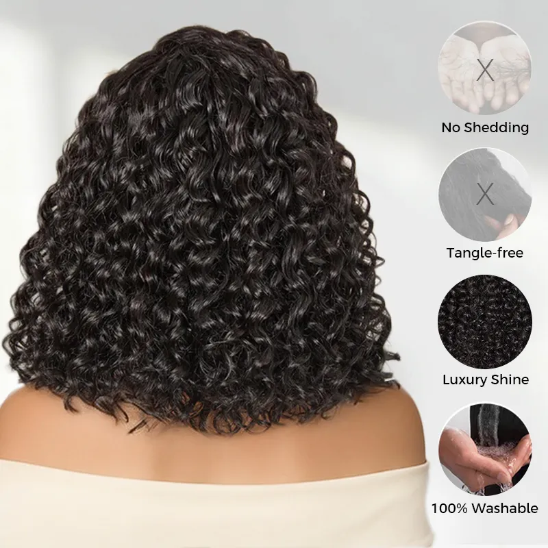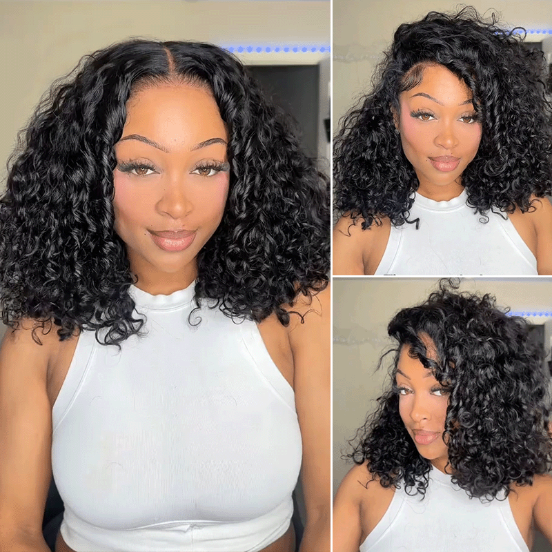 Short Bouncy Water Wave Wear Go Glueless 6×5 HD Lace Wig 100% Human Hair Casual Finger Curls