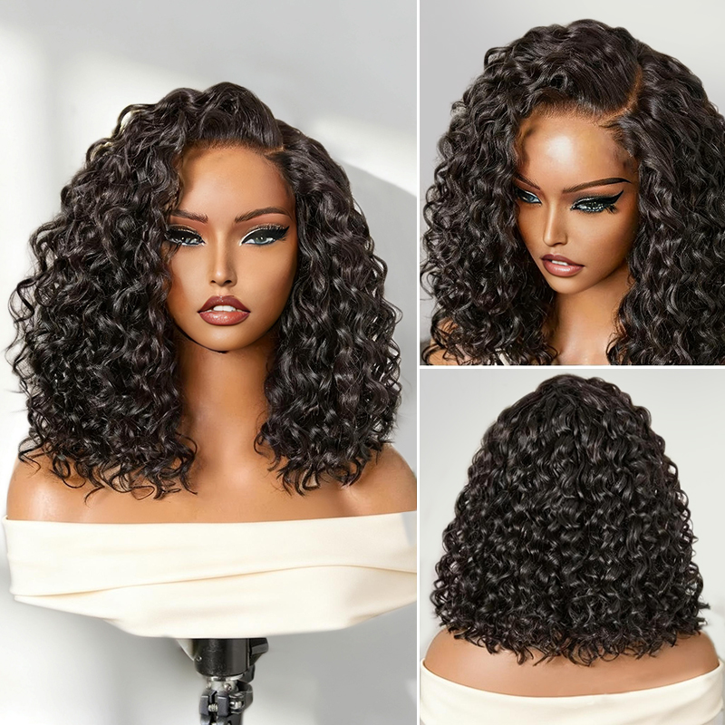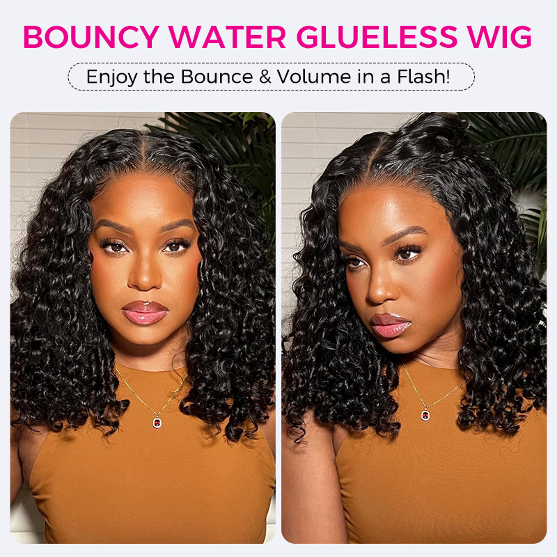Short Bouncy Water Wave Wear Go Glueless 6×5 HD Lace Wig 100% Human Hair Casual Finger Curls
