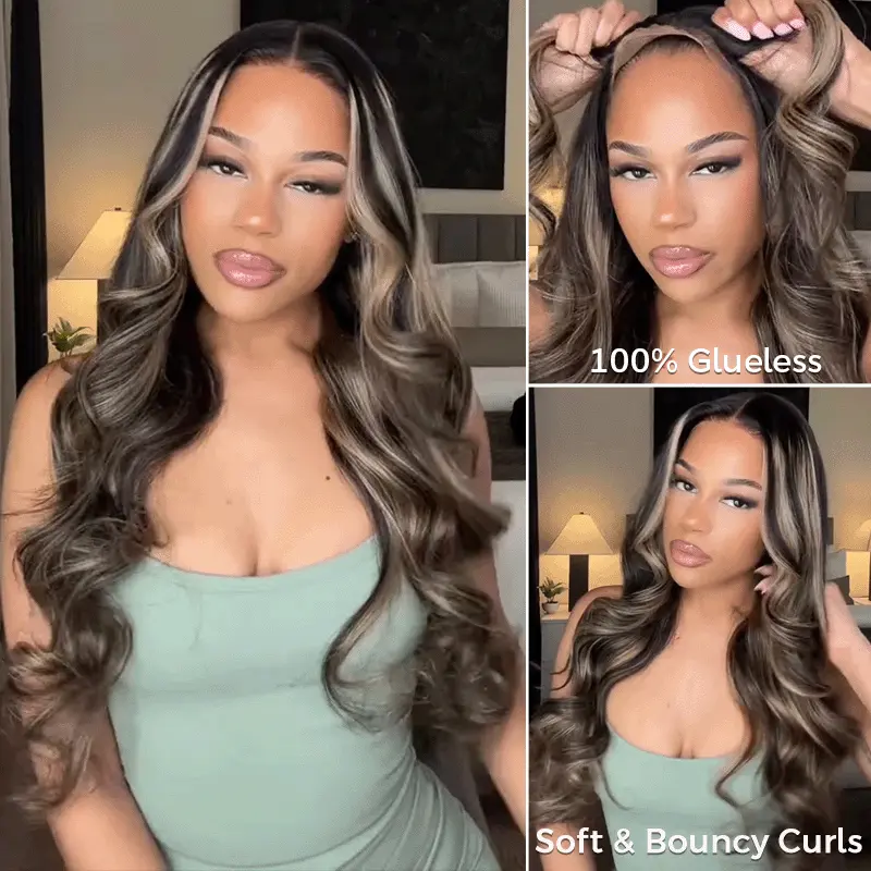Wear Go Balayage Highlight Body Wave Wig Pre-Cut 6×5 Lace Straight Hair Glueless Wig Black With Blonde Highlight