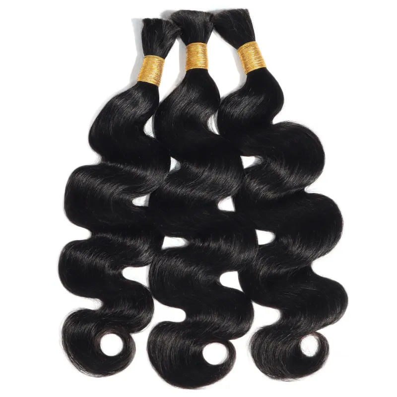 Body Wave Bulk Human Hair Extensions for Boho Knotless Braiding 1/2/3 Bundles Black Color