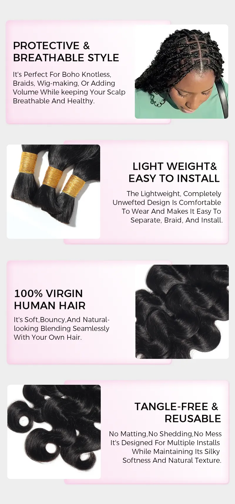 • Endless Versatility:Knotless braids, twists, locs, Boho Style