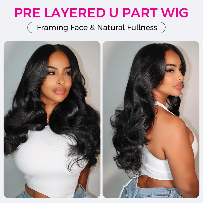 Butterfly Layer Loose Body Wave/Straight/Curly U Part Human Hair Wig Pull & Go Beginner Friendly 200% Density