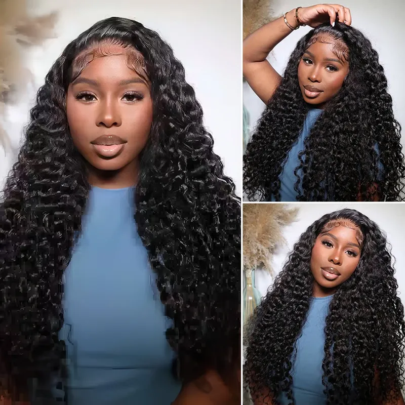 Deep Wave 6×5 13×4 HD Lace Human Hair Wigs Pre Plucked Curly Wig 200% Density