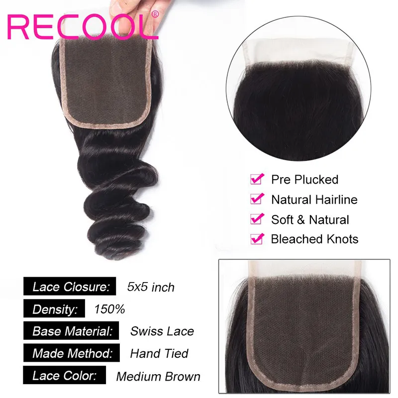 Recool Hair Brazilian Loose Wave Bundles With Closure Brazilian Human Hair Weave Bundles 3 Bundles With Closure Spring Loose Curly 10A Grade