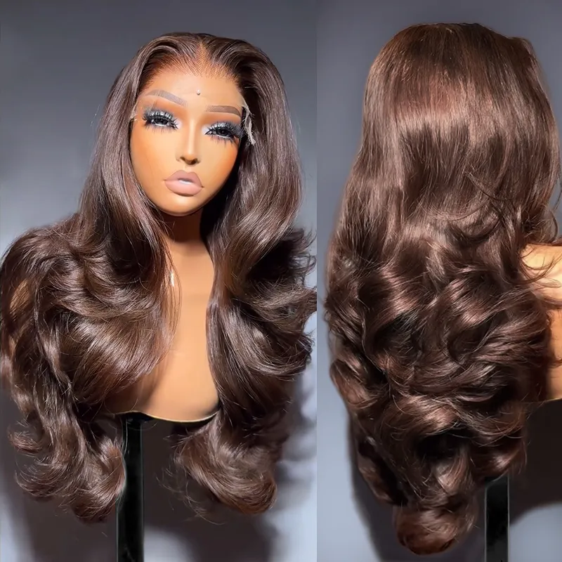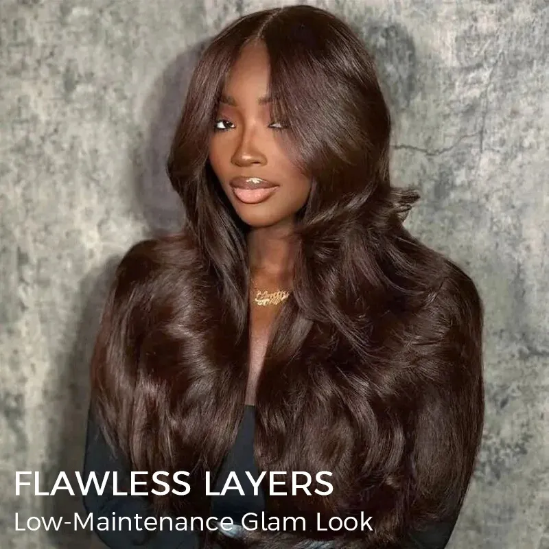 Brown Color Pre Styled Butterfly Layered Cut Loose Body Wave 6×5 Glueless Closure Wig