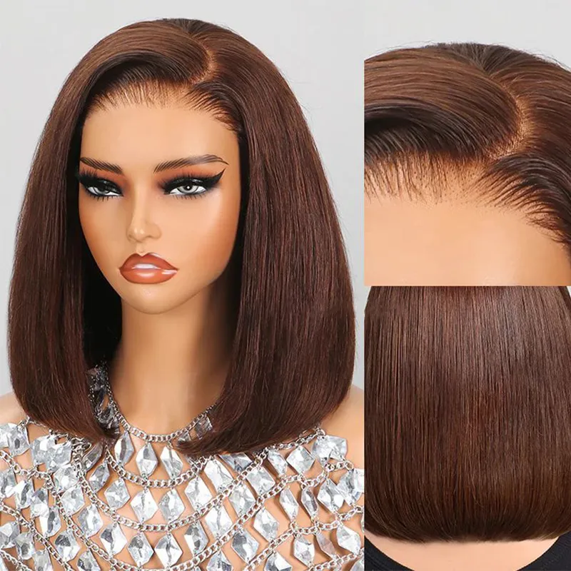 Brown Color Straight Bob Wig 6×5 Wear Go Glueless 100% Human Hair Wig 180% Density
