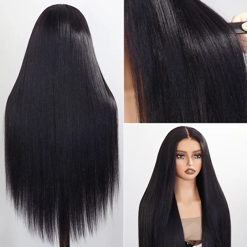 Yaki Straight 13×4 HD Lace Frontal Wig 6×5 Closure Glueless Human Hair Pre Bleached & Plucked