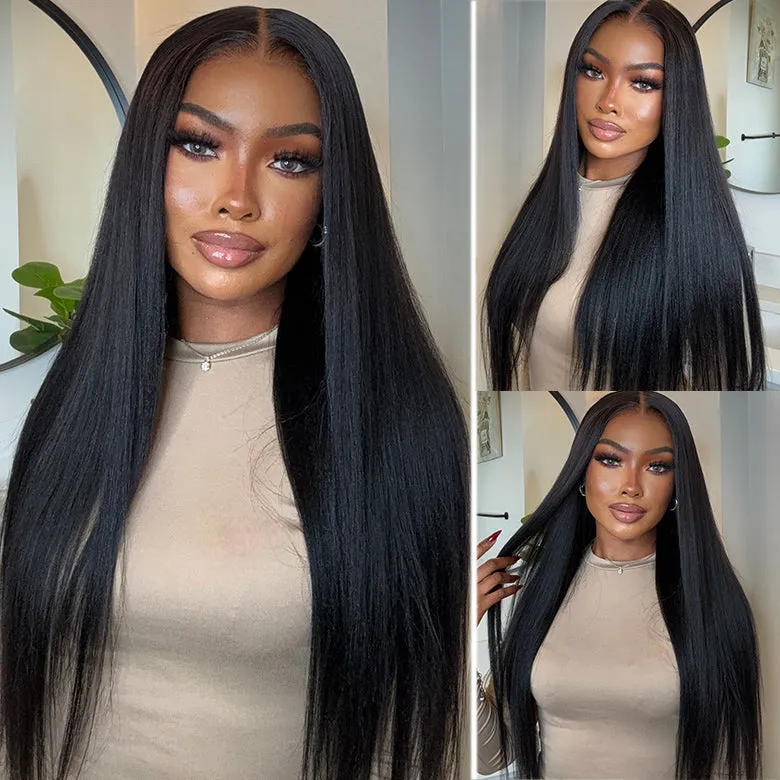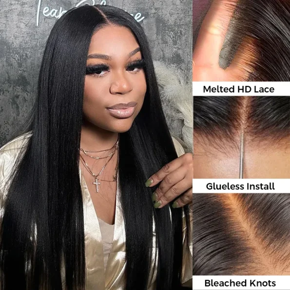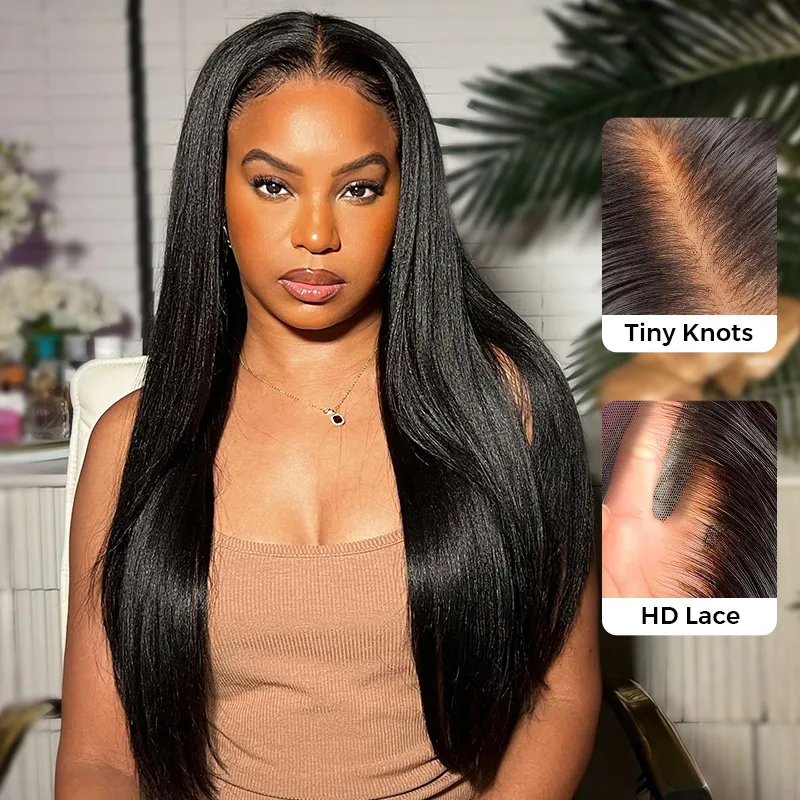 Yaki Straight 13×4 HD Lace Frontal Wig 6×5 Closure Glueless Human Hair Pre Bleached & Plucked