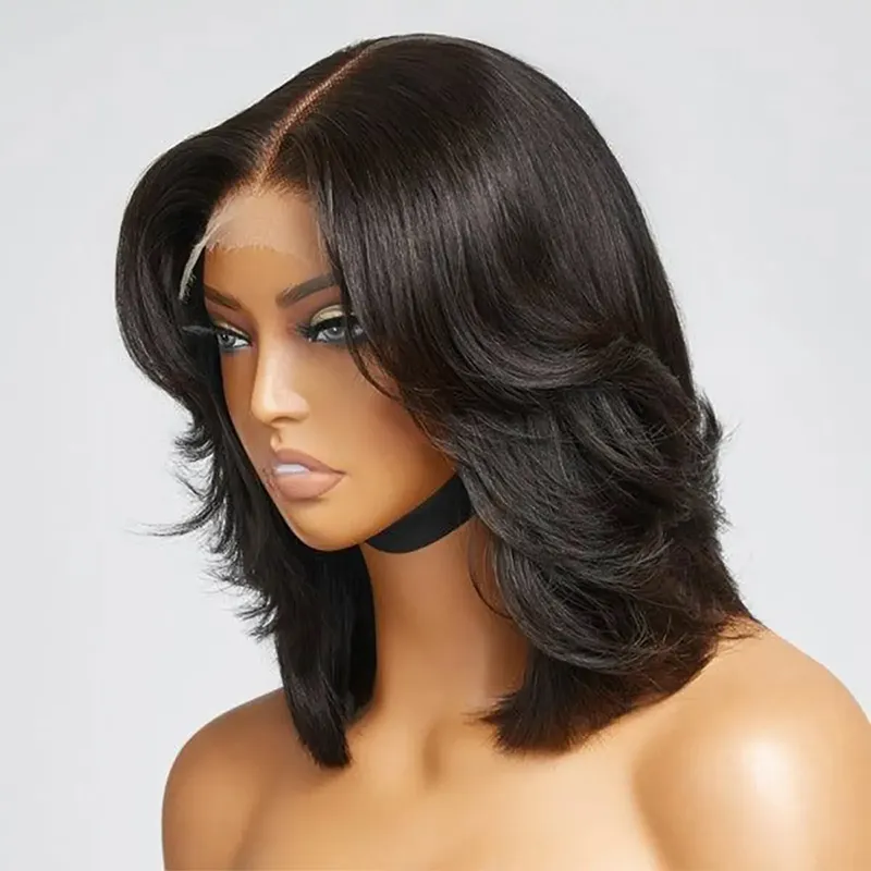 Handcraft Layered Cut 6×5 HD Lace Wear Go Glueless Short Bob Wig 100% Human Hair Natural Black