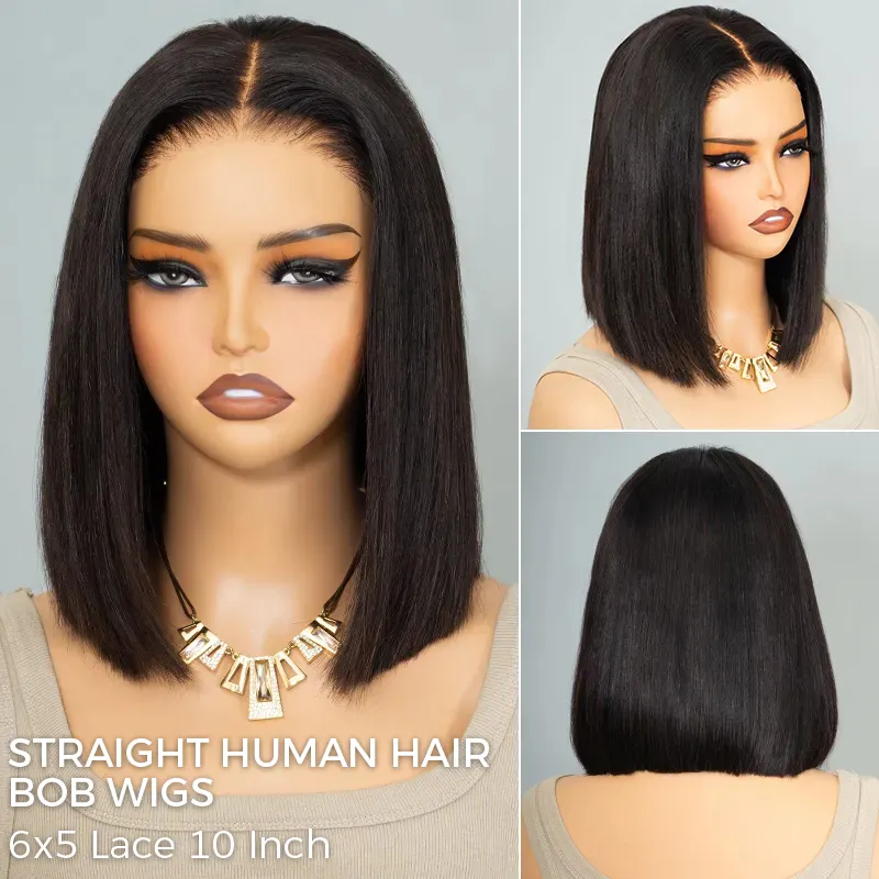 4C Edges Hairline | Kinky Straight Short Bob Human Hair Glueless Wigs Side Part 6×5 Lace 180% Density4.9768786127168 out of 5(173 Reviews)