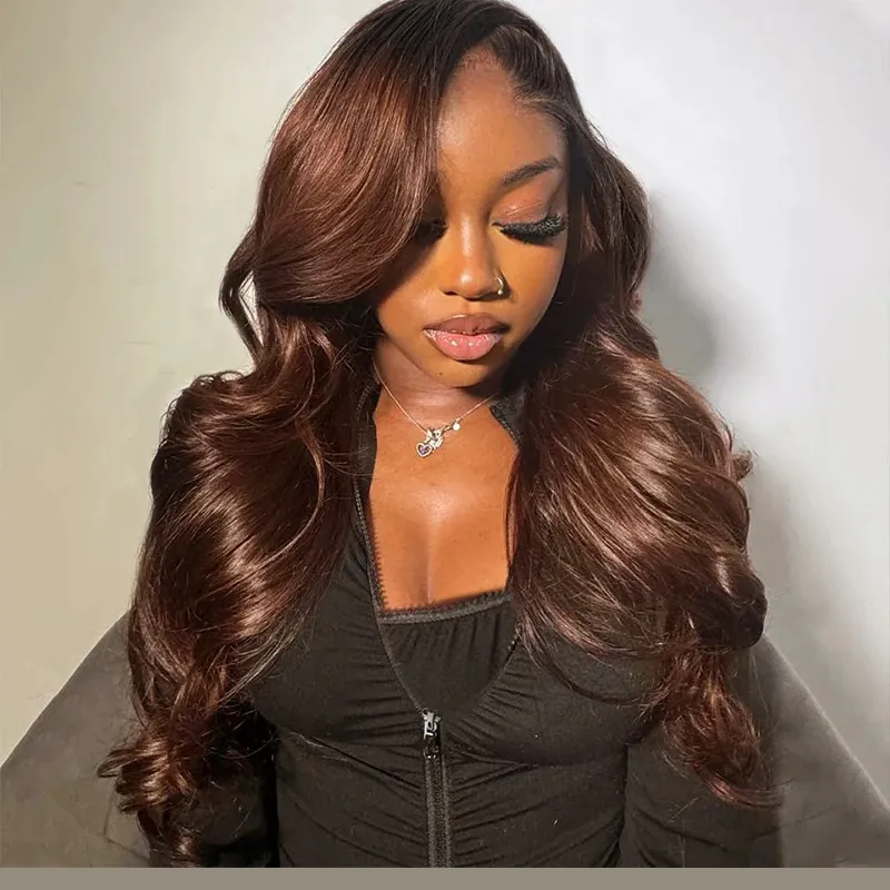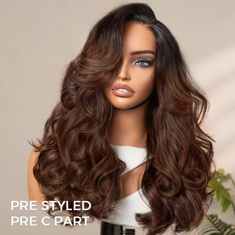 Butterfly Layered Cut Loose Body Wave Ombre Brown With Dark Roots Glueless Closure Wig C Side Part