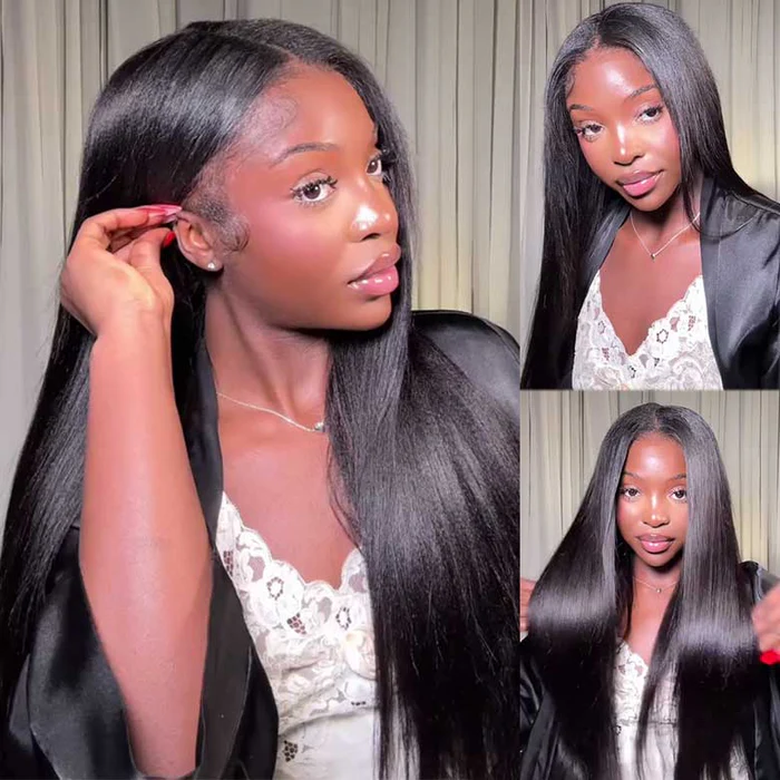 Yaki Straight U/V Part Human Hair Wig Pull & Go Beginner Friendly Natural Look 200% Density